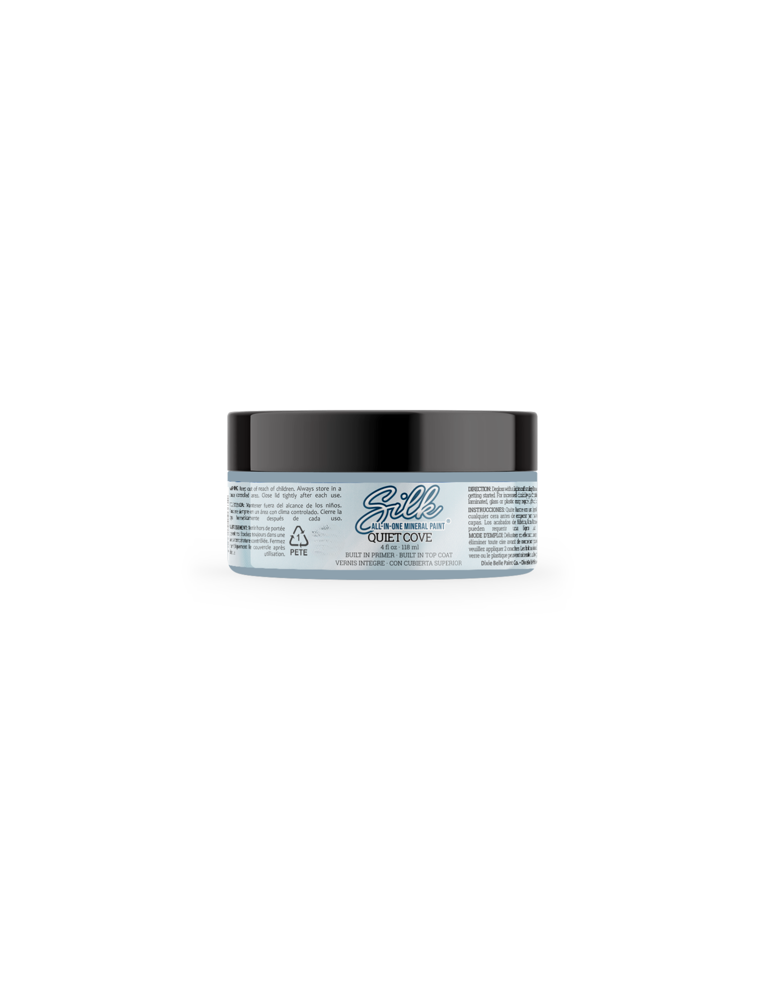 Quiet Cove Silk All-In-One Mineral Paint is a serene medium gray-blue that brings a calming touch to any DIY project with a soothing hue perfect for refreshing furniture and home decor with a timeless and tranquil aesthetic.