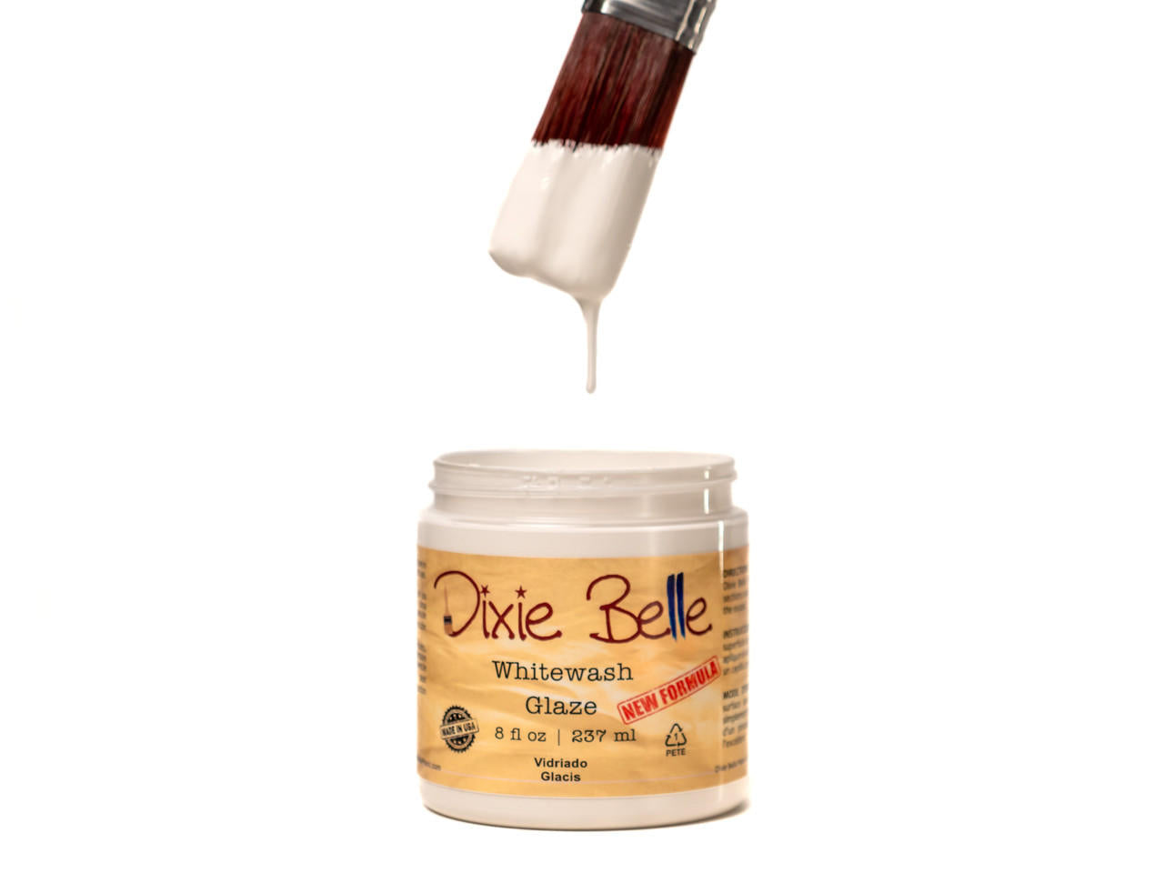 Apply a Dixie Belle paint product and allow to dry. Apply glaze in small sections using a Dixie Belle brush (we prefer the French Tip or Premium Chip Brush) or a lint free cloth. Wipe away excess glaze or add more if necessary. You can use Dixie Belle glazes on a clean unpainted surface, a Dixie Belle painted surface (any of our 3 lines of paint) or a Clear Coated Surface.